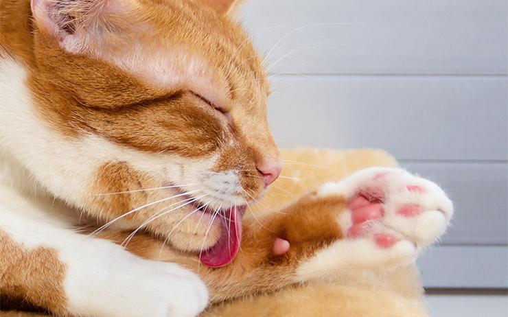 Die Zunge der Katze ist eine Art kleines «Reibeisen». Sie ist übersät mit kleinen, nach hinten gerichteten «Miniaturstacheln» für die tägliche Fellpflege sowie die Nahrungs- und Wasseraufnahme. Die raue Zunge wirkt wie ein Kamm, entfernt die toten Haare und regt dabei auch die Talgproduktion an. In der Haut befinden sich zahlreiche Talgdrüsen, welche mit ihrer ölhaltigen Substanz dem Katzenfell einen Wasserschutz verleihen. In dieser Substanz ist Cholesterol enthalten, das durch Sonnenlicht zu Vitamin D umgewandelt wird. So nimmt die Katze ganz nebenbei noch Vitamin D auf: