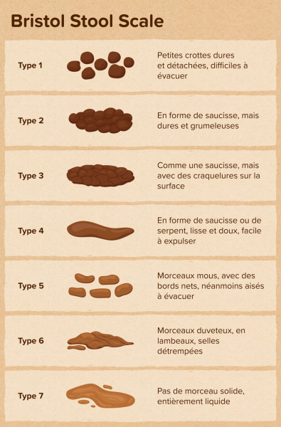 Cette échelle permet d'analyser la forme des selles et d'identifier d'éventuels problèmes digestifs :
