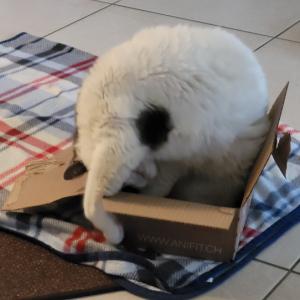 Cependant, comme sa sœur Sally est parfois une petite déchiqueteuse de carton, nous avons de temps en temps besoin de fournitures de boîtes et elle serait donc très heureuse non seulement du contenu de la boîte, mais bien sûr aussi de la boîte elle-même.