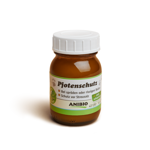 Zur Vorbeugung und Pflege von rissigen und spröden Pfotenballen empfehlen wir unsere Pfotenschutz-Creme auf rein natürlicher Basis.